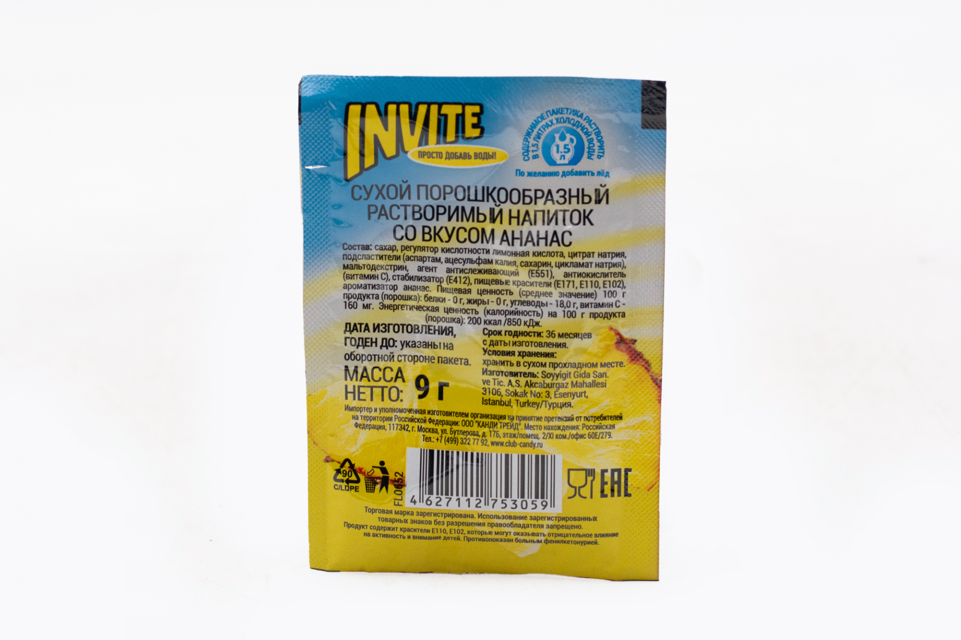 Растворимый напиток Invite Ананас 9 грамм8,73 руб. за штуку (в упак. 24 шт.) |