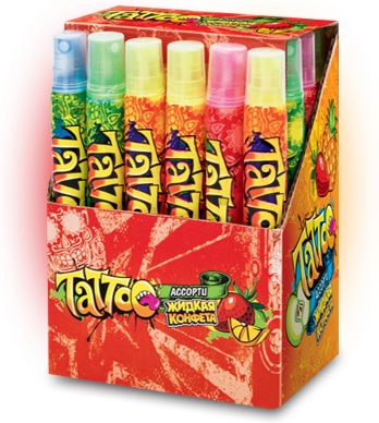 Жидкая конфета-спрэй со вкладышем-татуировкой TATTOO ассорти 16 мл0,00 руб. за штуку (в упак. 24 шт.) |