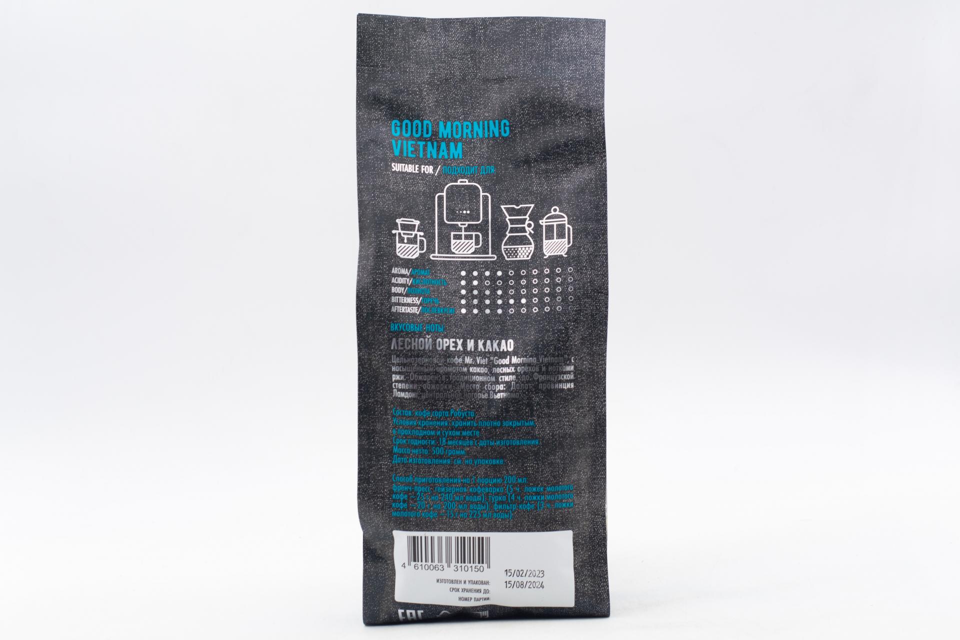 Кофе натуральный жареный в зернах Mr. Viet Доброе утро, Вьетнам! 500 гр0,00 руб. за штуку (в упак. 12 шт.) |