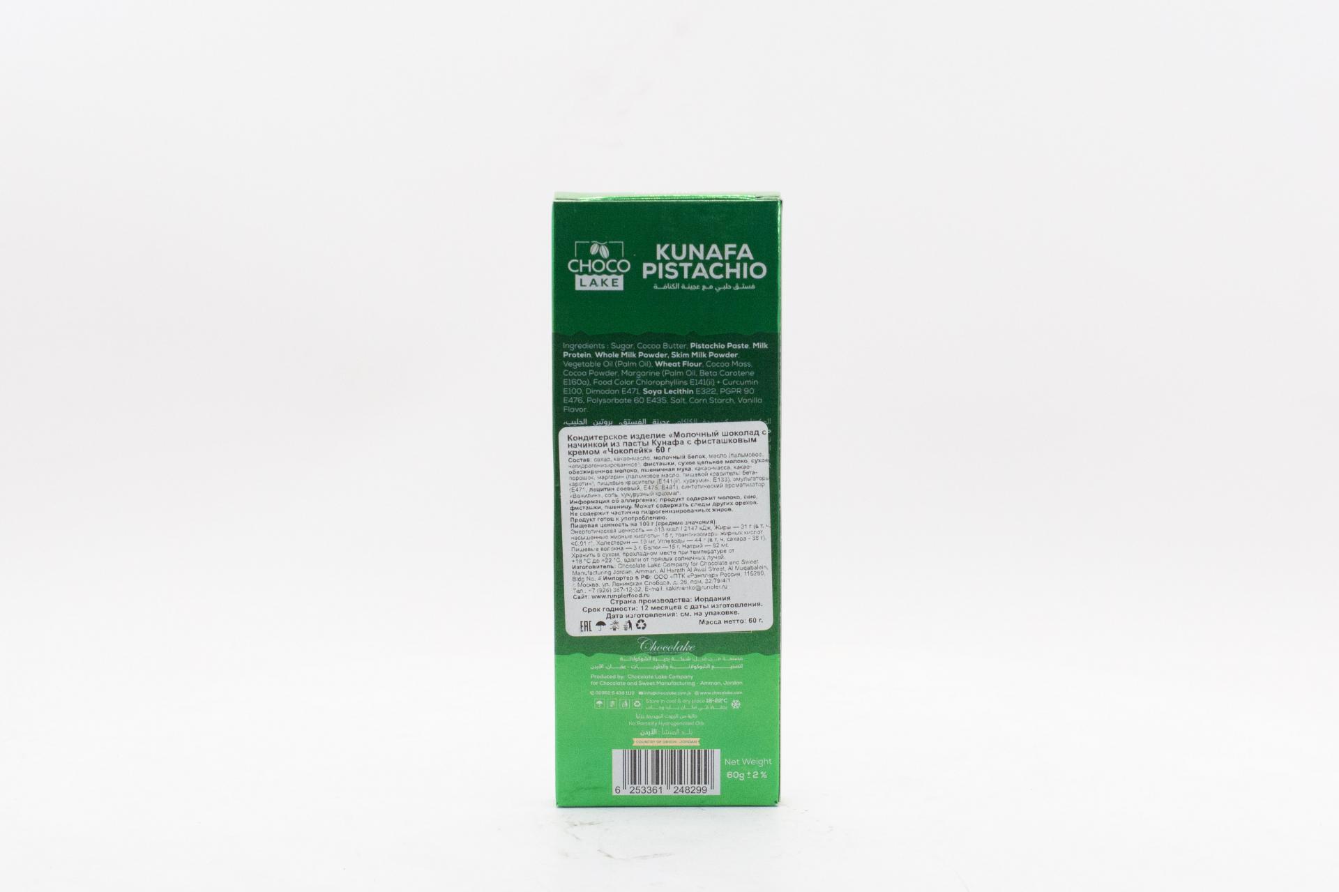 Молочный шоколад Choco Lake с начинкой из пасты Кунафа с кремом Бонелло (Иордания) 80г