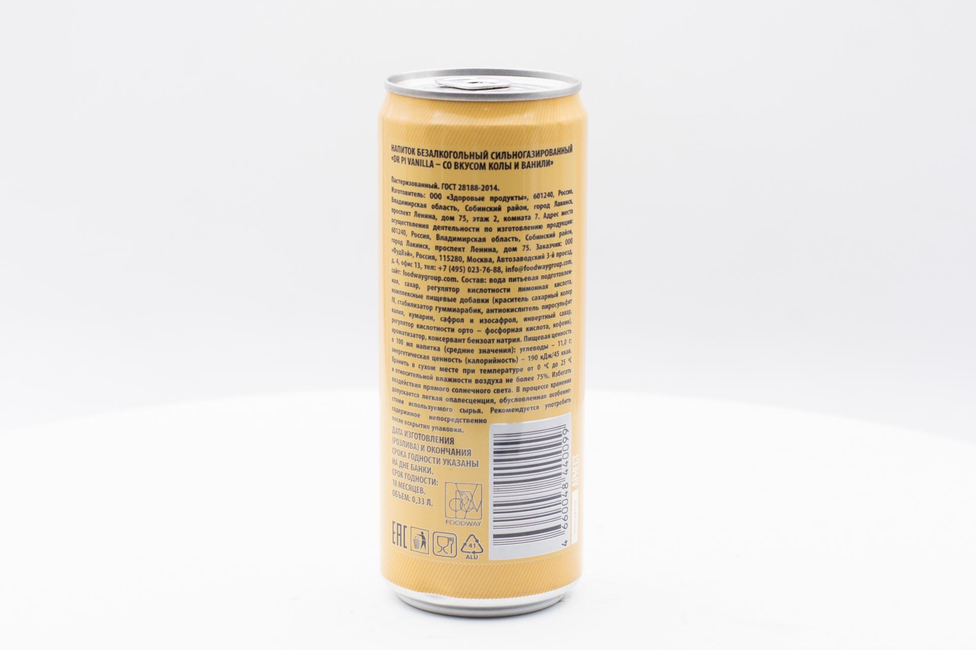 Напиток б/а газ. Dr Pi Vanilla 330 мл ж/б40,90 руб. за штуку (в упак. 12 шт.) |