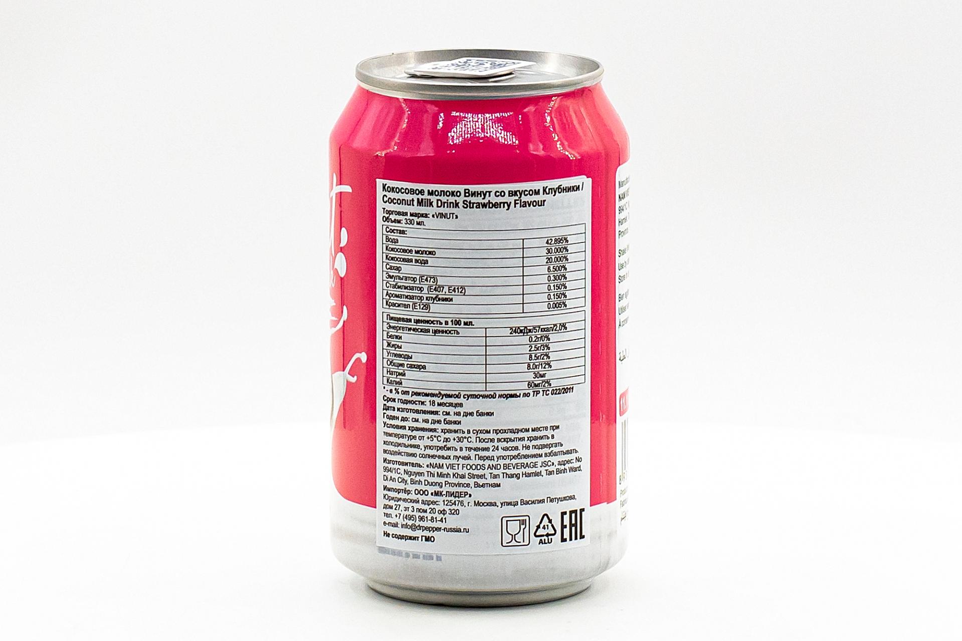 Напиток безалкогольный негазированный Vinut кокосовое молоко со вкусом Клубники 330 мл ж/б66,45 руб. за штуку (в упак. 24 шт.) |
