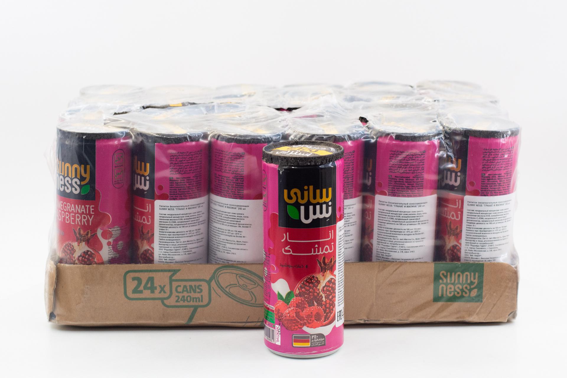 Напиток безалкогольный сокосодержащий Sunny Ness Гранат и малина (Иран) 240мл ж/б62,35 руб. за штуку (в упак. 24 шт.) |