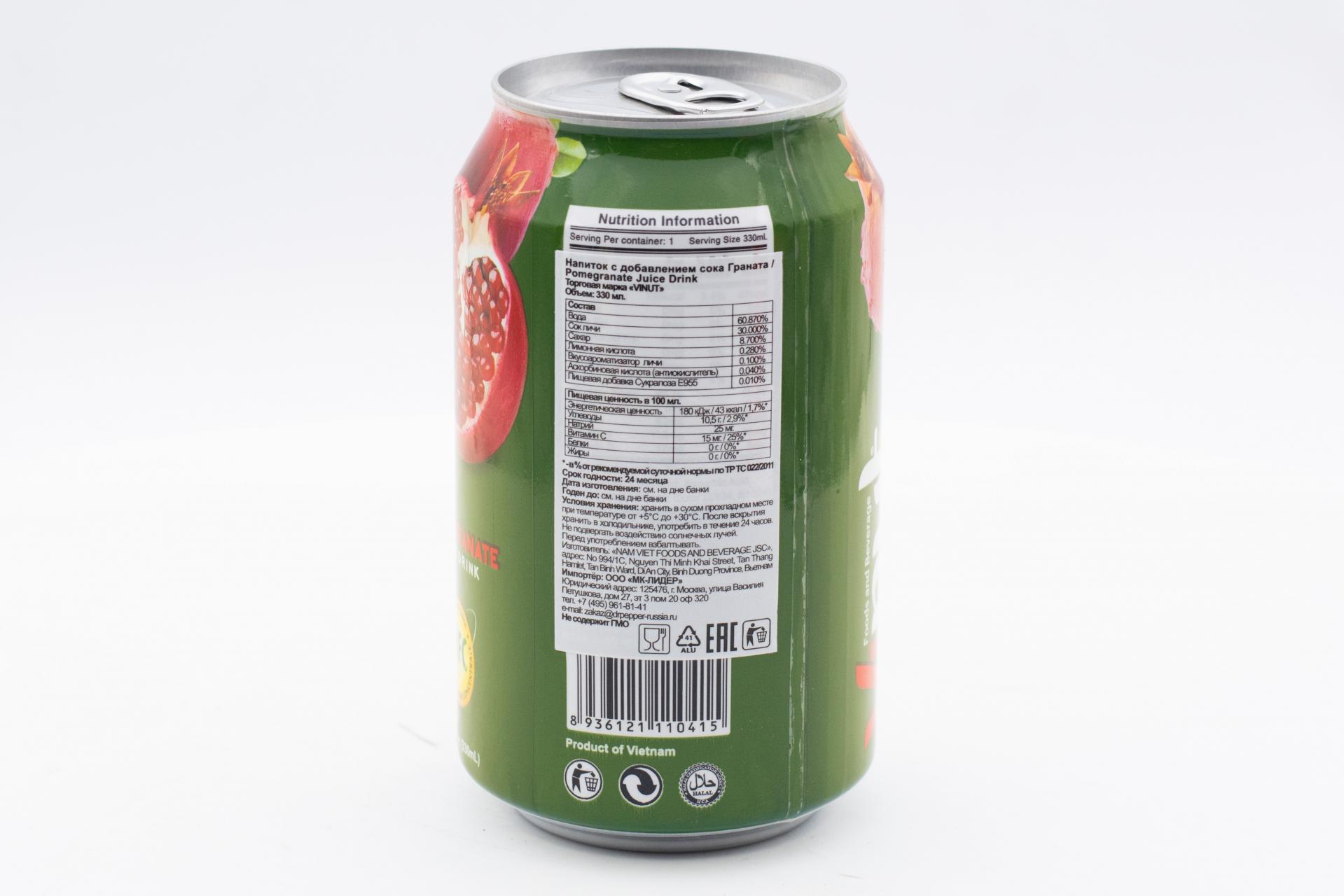 Напиток сокосодержащий Vinut с соком граната 330мл49,99 руб. за штуку (в упак. 24 шт.) |