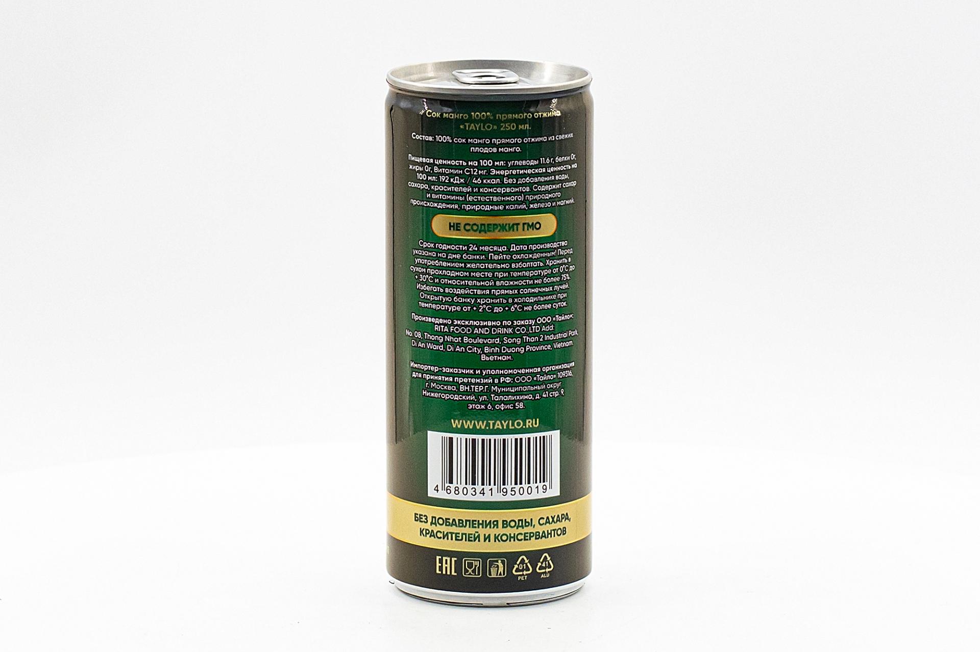 Сок TAYLO (Тайло Манго) 250 г77,50 руб. за штуку (в упак. 24 шт.) |